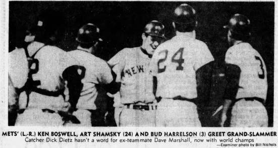 Grand Slam HR: In his second Mets start, he went up against his old Giants teammates in Candlestick Park. In the top of the 1st inning, Marshall hit a grand slam HR off Gaylord Perry, helping the Mets to a 5-2 win.